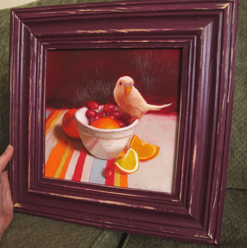 Ok, it's a little bold, but this plum frame is IMHO the perfect compliment to "Bird and Fruit." This painting (plus a few more) will debut at Gallery +, Friday, September 16 from 5-9pm during 78th ST Open Studios. Hope to see you there!